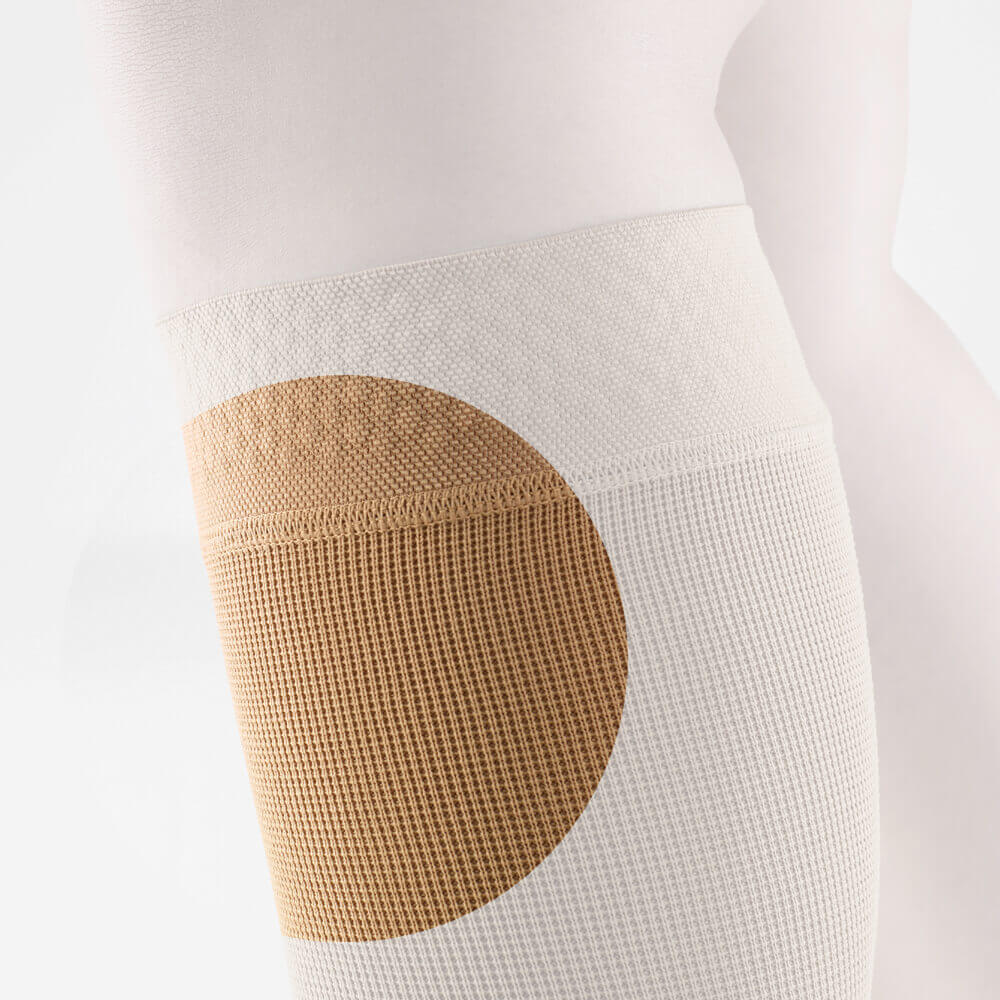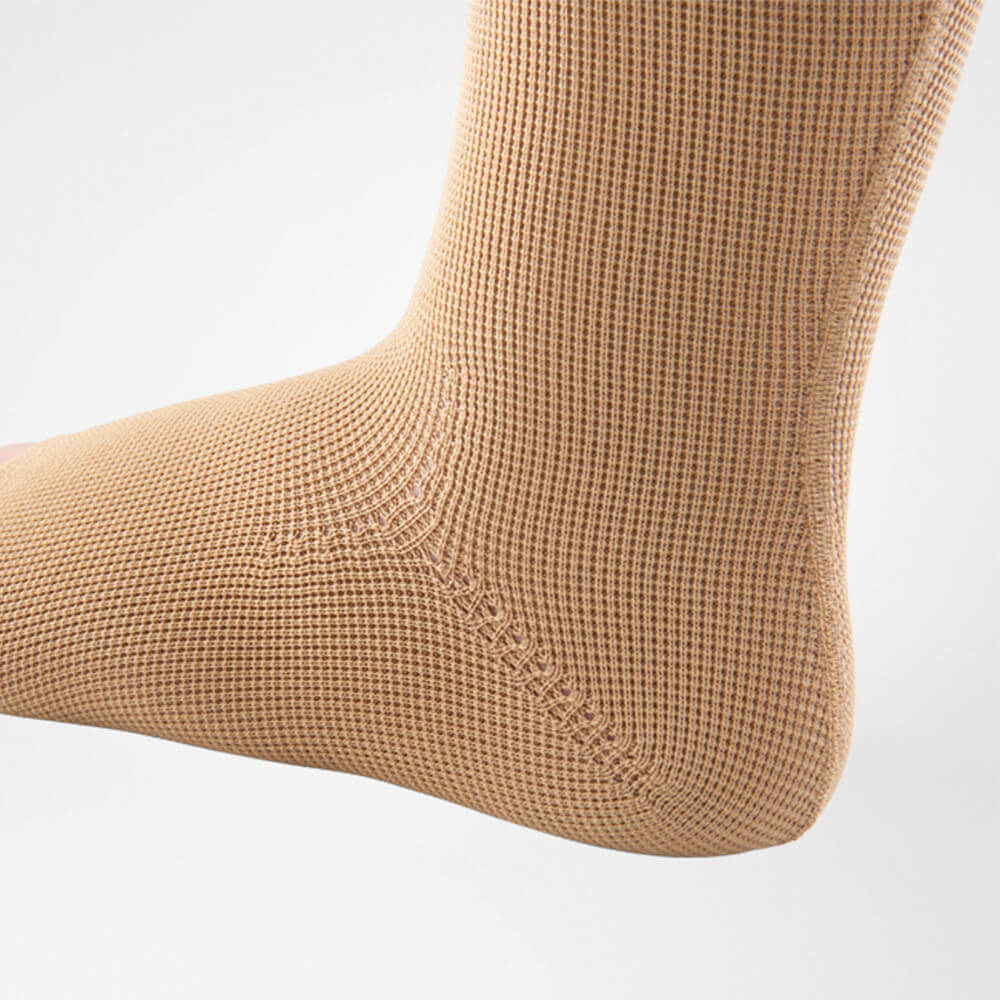 Le calze VenoTrain delight sono dermocompatibili e comode da indossare sia nelle giornate calde che in quelle più fredde. Le cuciture extra-piatte non creano alcun tipo di sfregamento. La speciale struttura gripRelief dei bordi risulta confortevole e non stringe. In prossimità della caviglia è possibile posizionare un pad in gel (pelotta) opzionale, per trattare in modo mirato i gonfiori e gli irrigidimenti in questa specifica area. Per garantirti vestibilità ed efficacia ottimali, le calze VenoTrain delight vengono realizzate anche su misura.