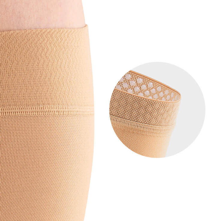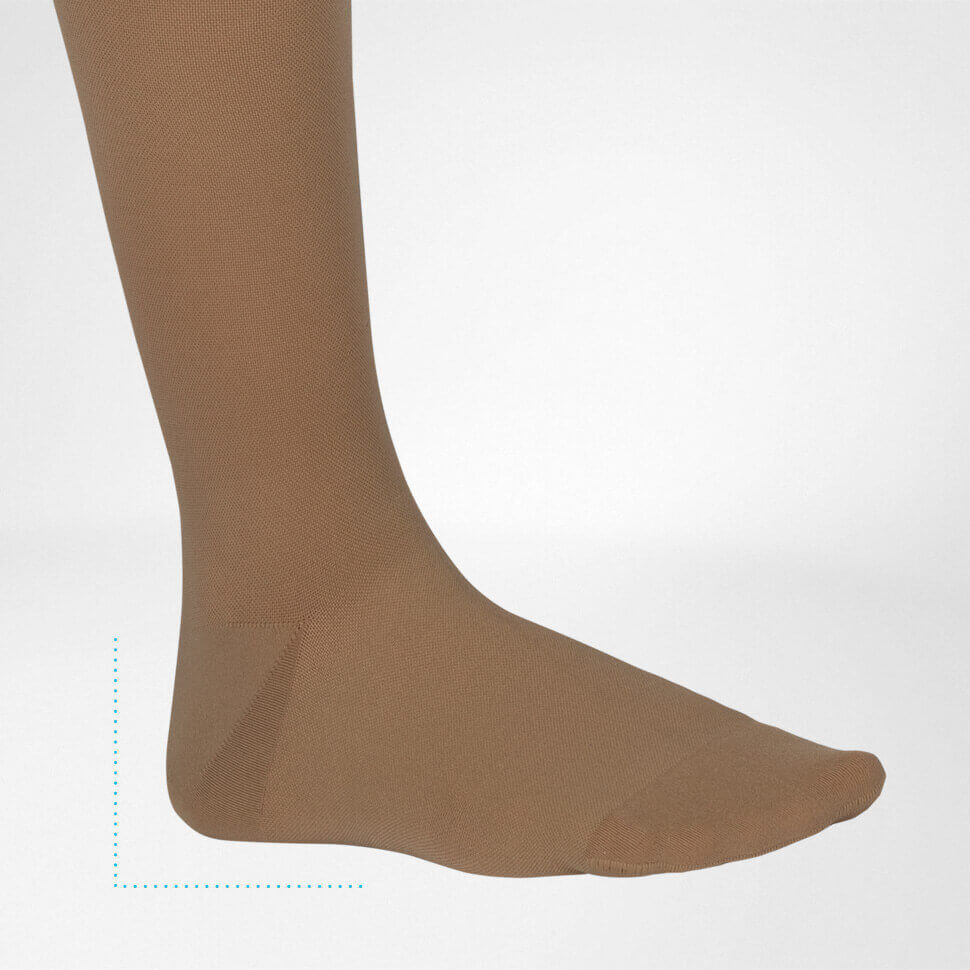 Grazie al tallone con lavorazione elaborata e al collo del piede particolarmente con angolazione più pronunciata, queste calze sono realizzate specificamente per chi ha difficoltà di deambulazione e risultano particolarmente facili da indossare. Il tessuto compressivo traspirante e dermocompatibile si adatta in modo straordinario alle pelli sensibili, che risultano tese in conseguenza dei gonfiori.