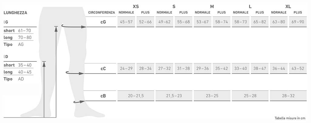 Indicazioni d'uso per il modello con sottocalza alla coscia (AG)*: