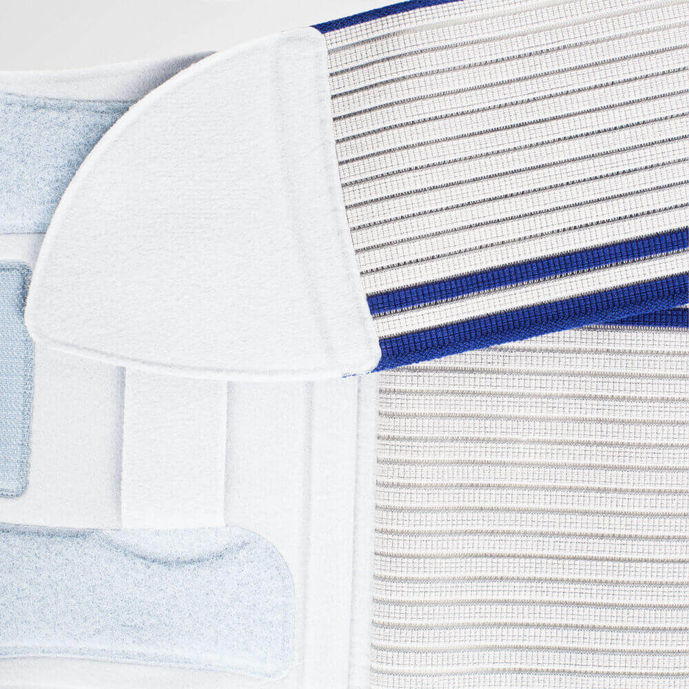 La sua conformazione circolare sostiene l’intero apparato del tronco. Il materiale elastico e rigido, ma allo stesso tempo confortevole, genera durante il movimento una leggera resistenza, attivando la muscolatura addominale e dorsale. Le stecche integrate supportano la colonna vertebrale laddove l’azione di attivazione della muscolatura non dovesse rivelarsi sufficiente. La struttura del corsetto può essere adattata in modo personalizzato da parte di un tecnico ortopedico. I pratici cinturini di trazione permettono di regolare l’azione di stabilizzazione della schiena in qualunque momento.